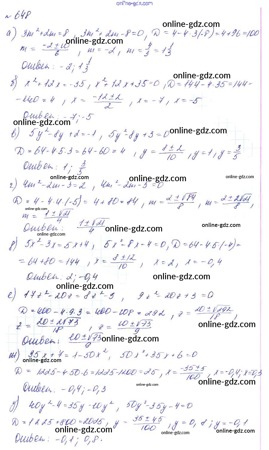 Готовые домашние задания по Алгебре за 8 класс Учебник Макарычев, Миндюк Углубленный уровень 2014 - Упражнения 648