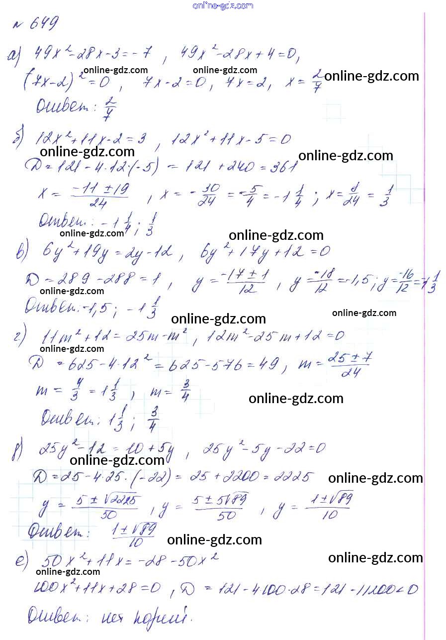 Готовые домашние задания по Алгебре за 8 класс Учебник Макарычев, Миндюк Углубленный уровень 2014 - Упражнения 649