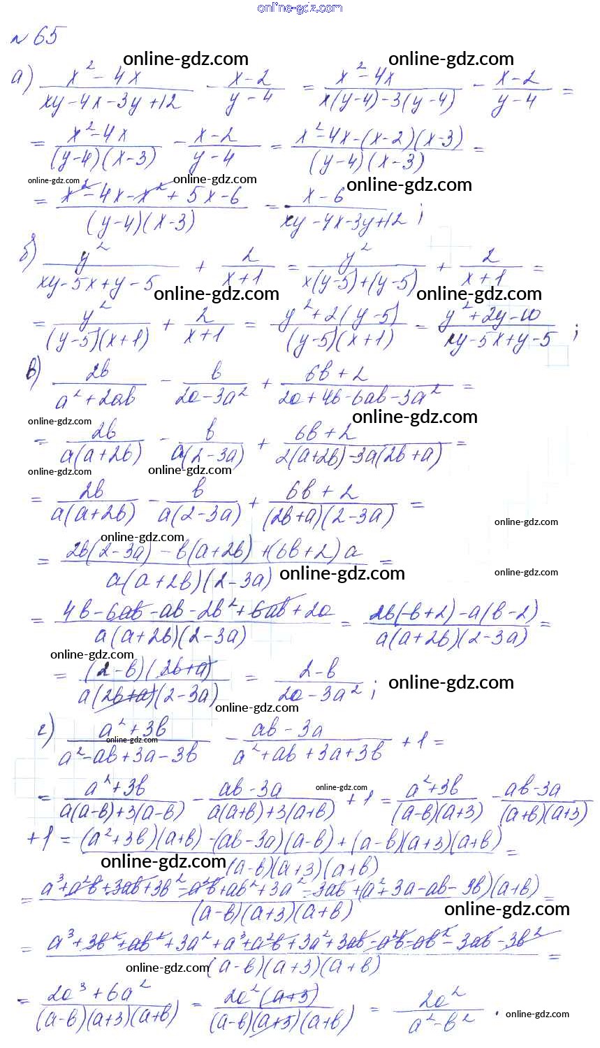 Готовые домашние задания по Алгебре за 8 класс Учебник Макарычев, Миндюк Углубленный уровень 2014 - Упражнения 65