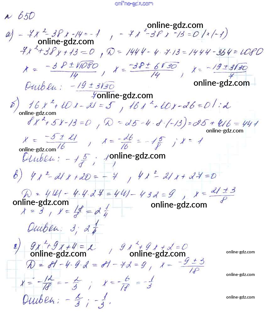 Готовые домашние задания по Алгебре за 8 класс Учебник Макарычев, Миндюк Углубленный уровень 2014 - Упражнения 650