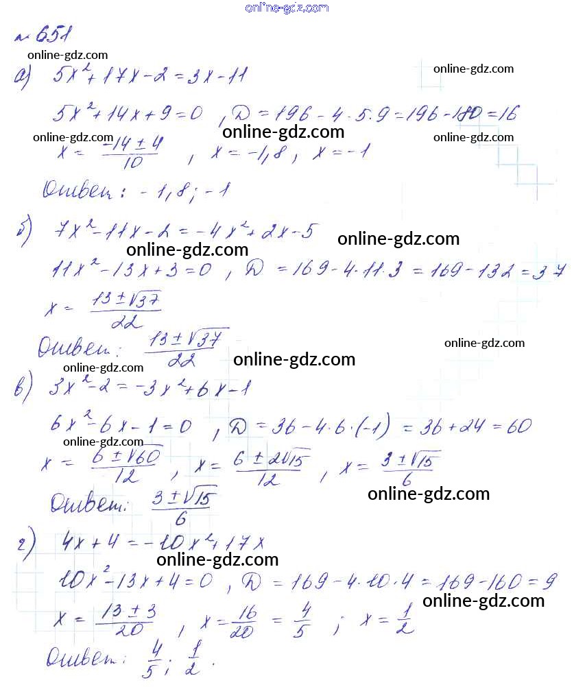 Готовые домашние задания по Алгебре за 8 класс Учебник Макарычев, Миндюк Углубленный уровень 2014 - Упражнения 651