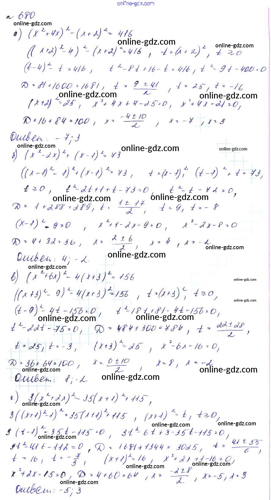Готовые домашние задания по Алгебре за 8 класс Учебник Макарычев, Миндюк Углубленный уровень 2014 - Упражнения 680