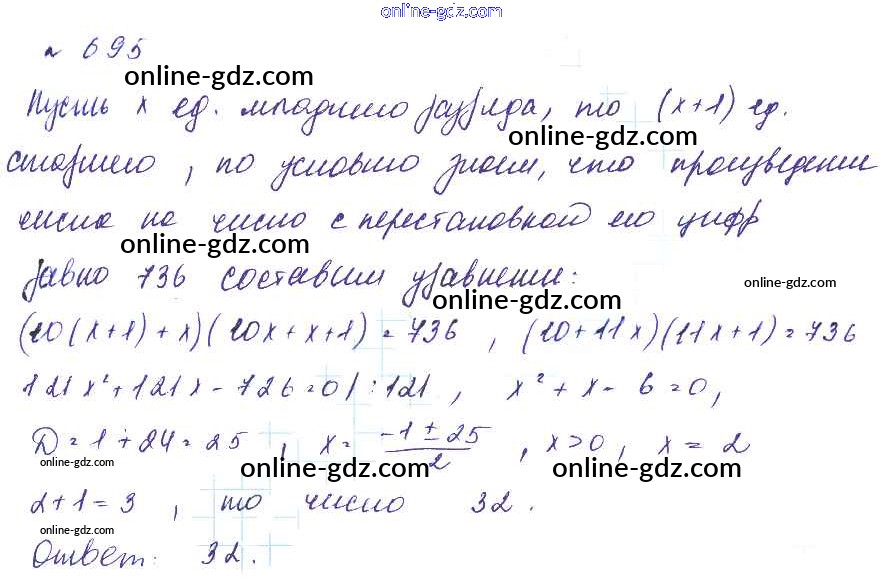 Готовые домашние задания по Алгебре за 8 класс Учебник Макарычев, Миндюк Углубленный уровень 2014 - Упражнения 695