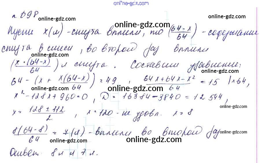 Готовые домашние задания по Алгебре за 8 класс Учебник Макарычев, Миндюк Углубленный уровень 2014 - Упражнения 698