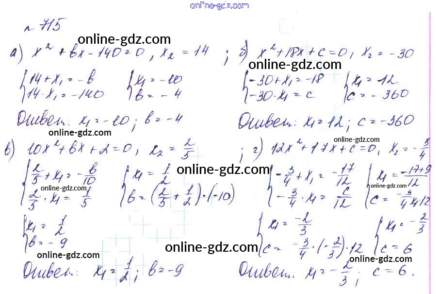 Готовые домашние задания по Алгебре за 8 класс Учебник Макарычев, Миндюк Углубленный уровень 2014 - Упражнения 715