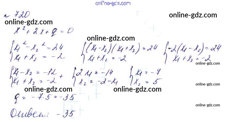 Готовые домашние задания по Алгебре за 8 класс Учебник Макарычев, Миндюк Углубленный уровень 2014 - Упражнения 720