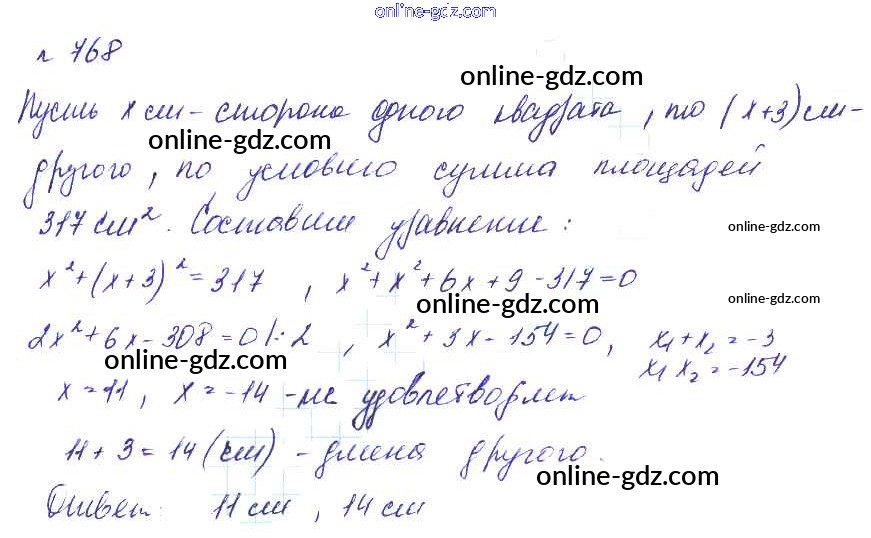 Готовые домашние задания по Алгебре за 8 класс Учебник Макарычев, Миндюк Углубленный уровень 2014 - Упражнения 768