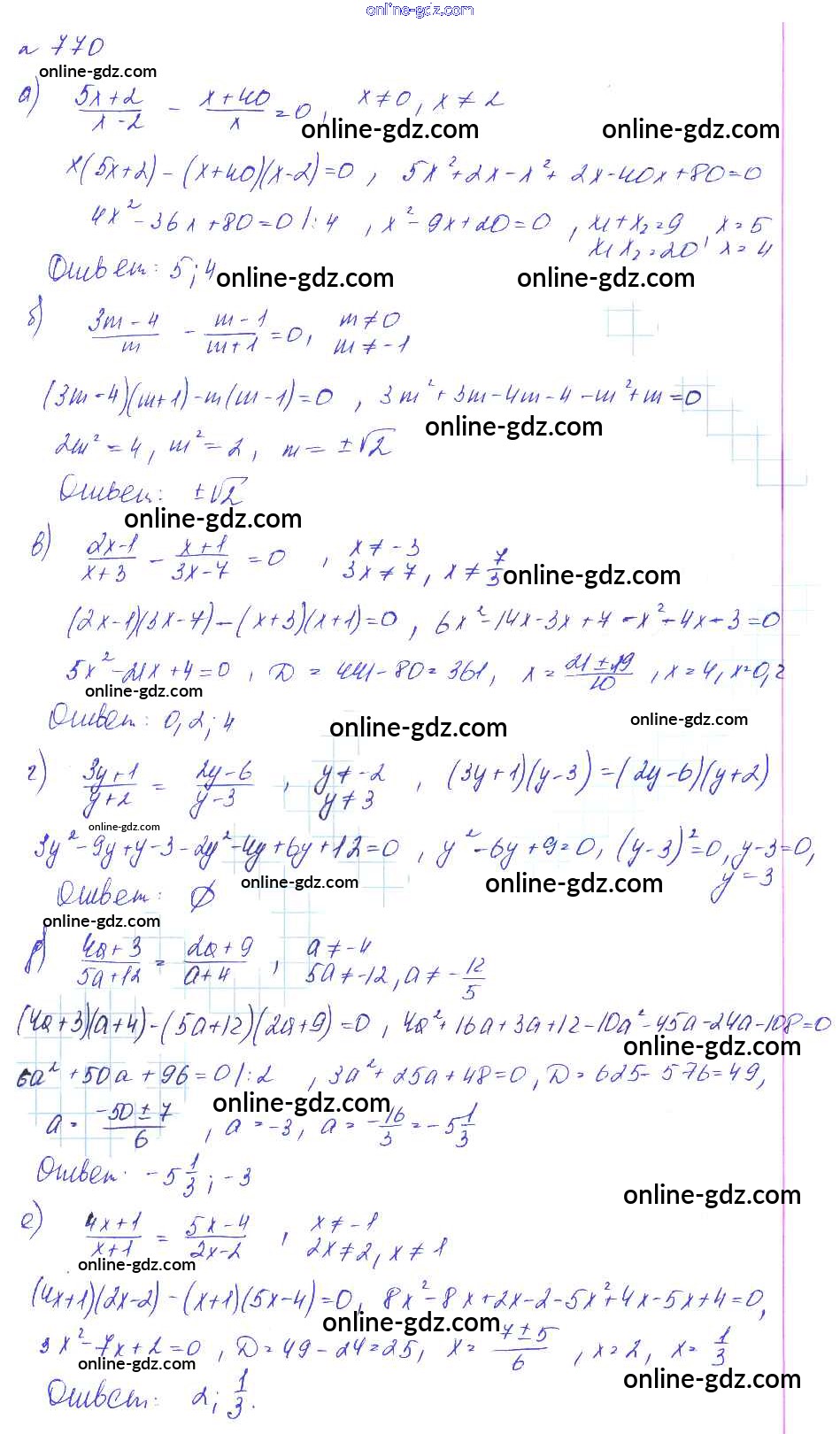 Готовые домашние задания по Алгебре за 8 класс Учебник Макарычев, Миндюк Углубленный уровень 2014 - Упражнения 770