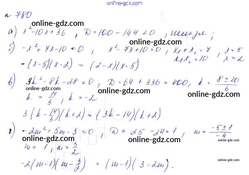 Готовые домашние задания по Алгебре за 8 класс Учебник Макарычев, Миндюк Углубленный уровень 2014 - Упражнения 780