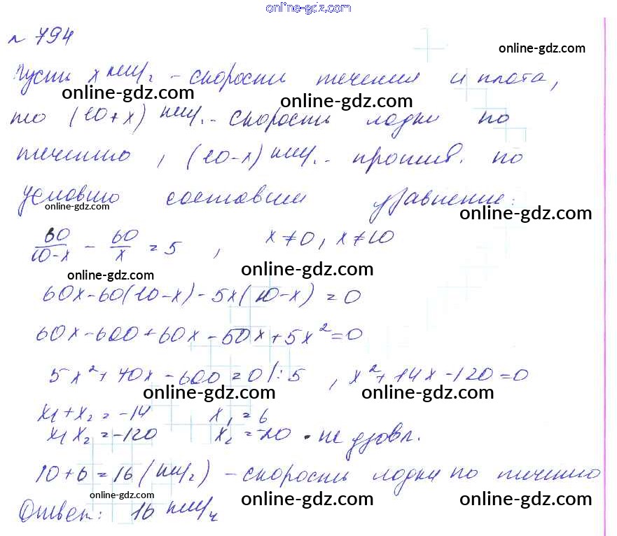 Готовые домашние задания по Алгебре за 8 класс Учебник Макарычев, Миндюк Углубленный уровень 2014 - Упражнения 794