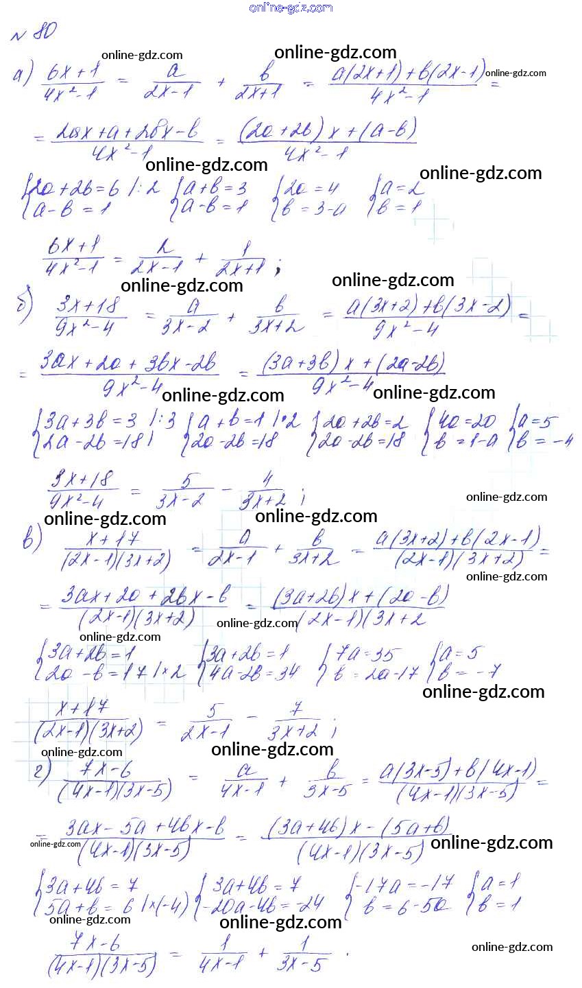 Готовые домашние задания по Алгебре за 8 класс Учебник Макарычев, Миндюк Углубленный уровень 2014 - Упражнения 80