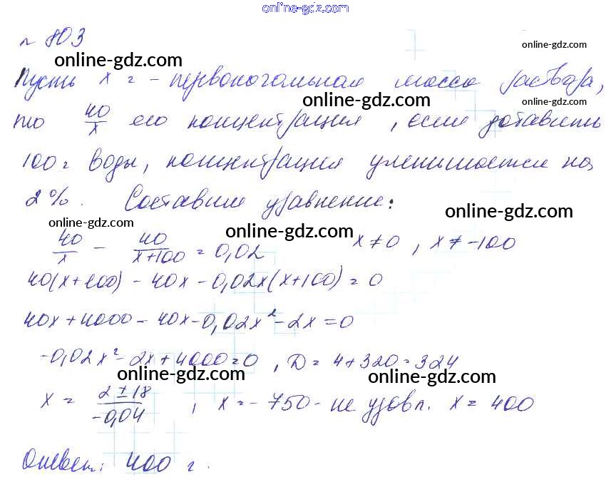 Готовые домашние задания по Алгебре за 8 класс Учебник Макарычев, Миндюк Углубленный уровень 2014 - Упражнения 803