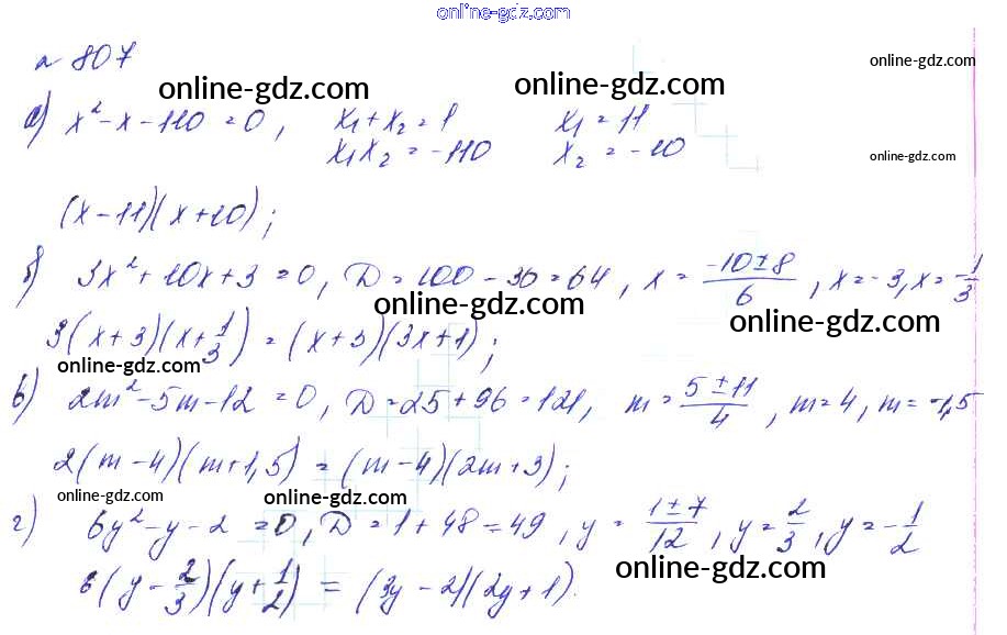 Готовые домашние задания по Алгебре за 8 класс Учебник Макарычев, Миндюк Углубленный уровень 2014 - Упражнения 807
