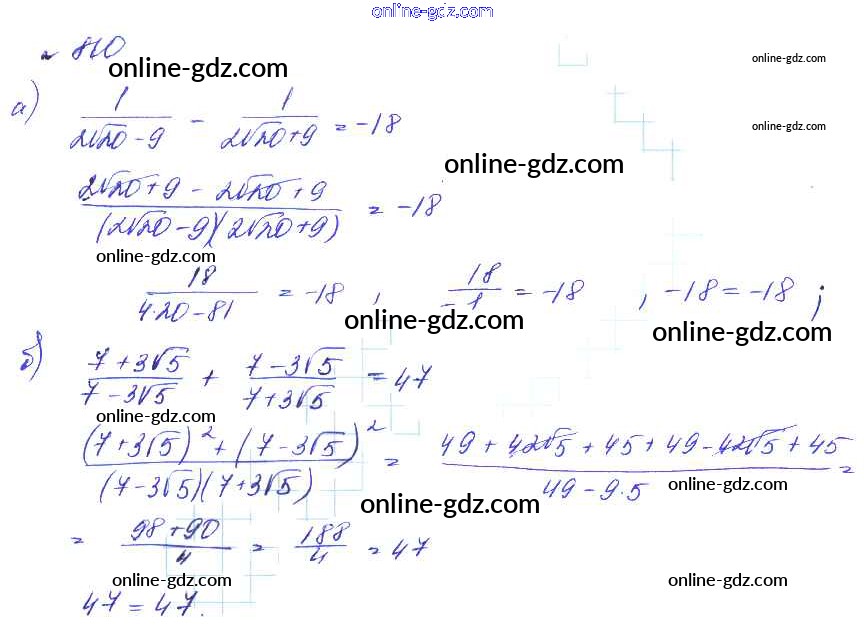 Готовые домашние задания по Алгебре за 8 класс Учебник Макарычев, Миндюк Углубленный уровень 2014 - Упражнения 810