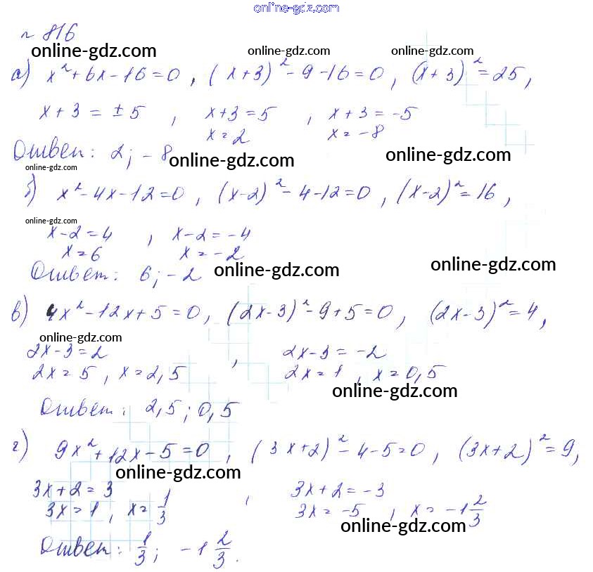 Готовые домашние задания по Алгебре за 8 класс Учебник Макарычев, Миндюк Углубленный уровень 2014 - Упражнения 816