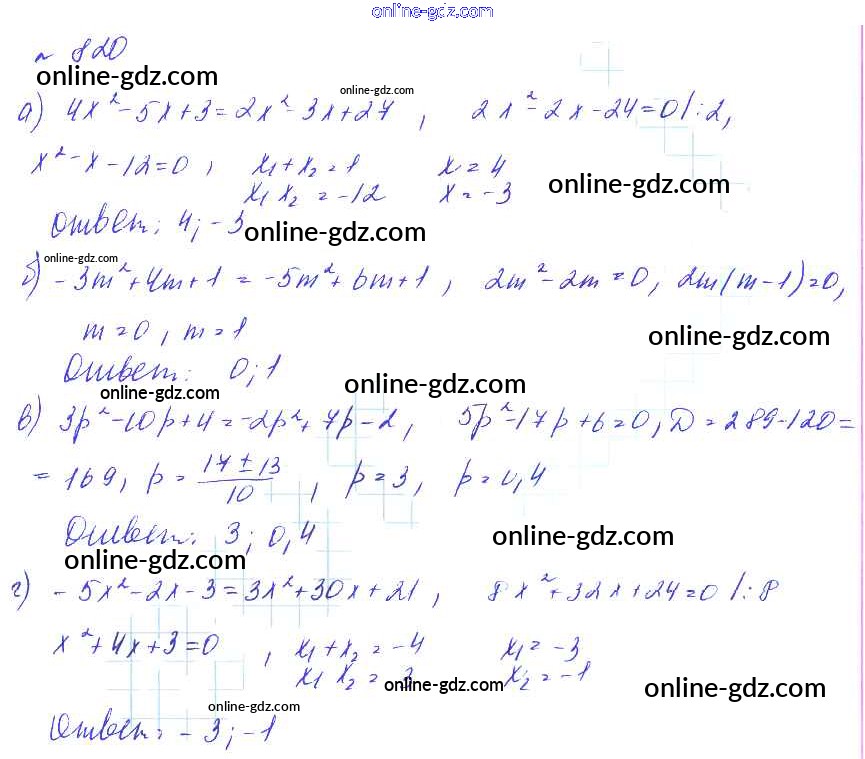 Готовые домашние задания по Алгебре за 8 класс Учебник Макарычев, Миндюк Углубленный уровень 2014 - Упражнения 820