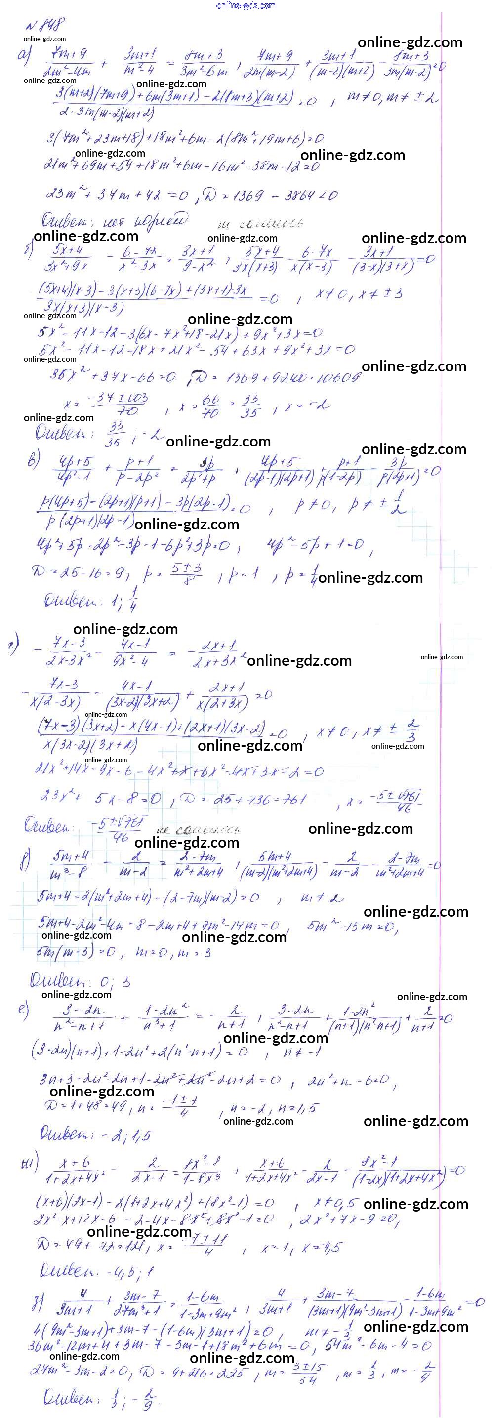 Готовые домашние задания по Алгебре за 8 класс Учебник Макарычев, Миндюк Углубленный уровень 2014 - Упражнения 848
