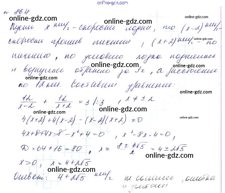 Готовые домашние задания по Алгебре за 8 класс Учебник Макарычев, Миндюк Углубленный уровень 2014 - Упражнения 864