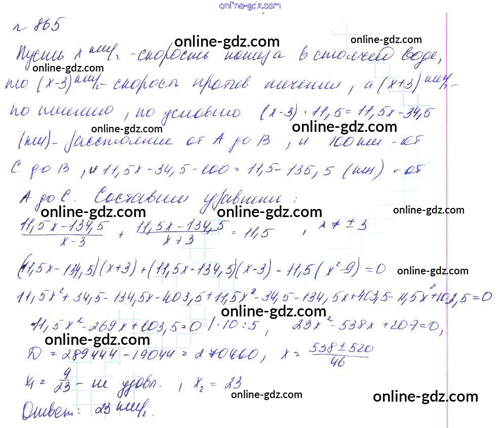 Готовые домашние задания по Алгебре за 8 класс Учебник Макарычев, Миндюк Углубленный уровень 2014 - Упражнения 865