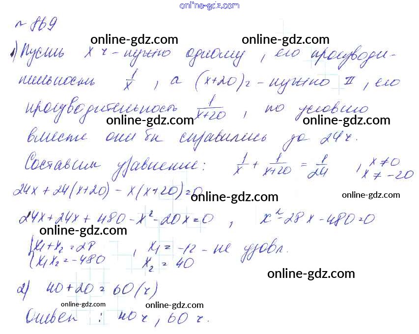 Готовые домашние задания по Алгебре за 8 класс Учебник Макарычев, Миндюк Углубленный уровень 2014 - Упражнения 869