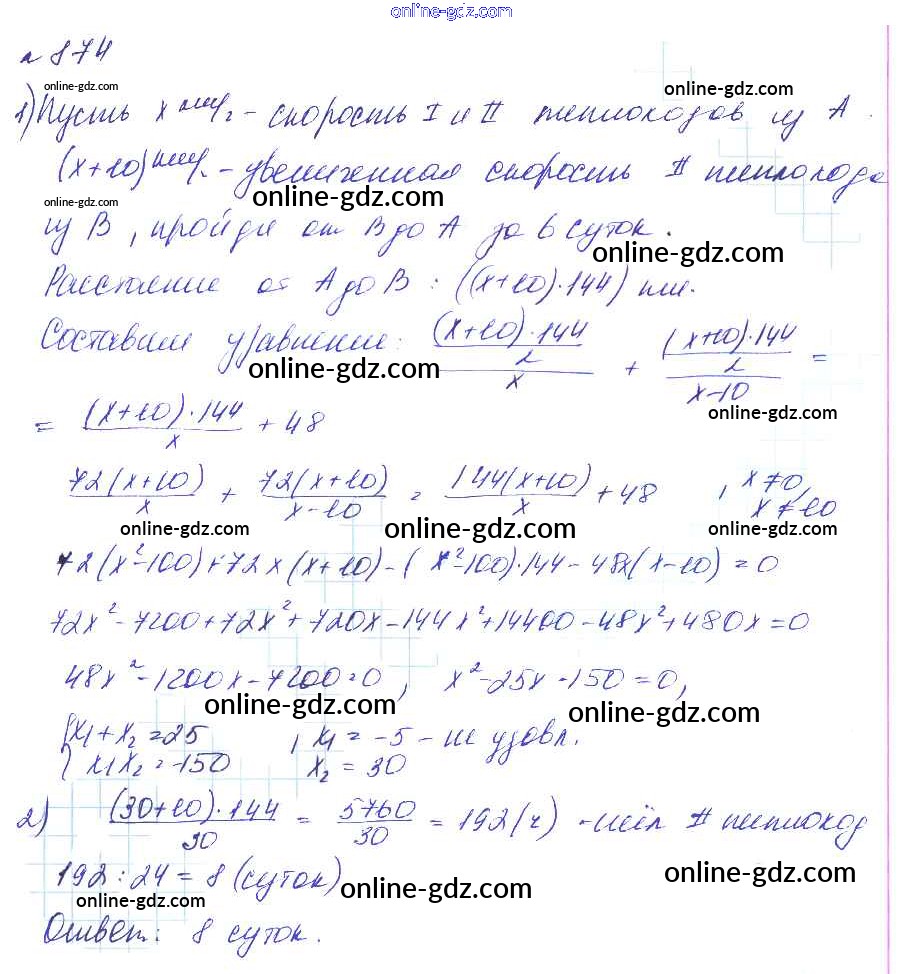Готовые домашние задания по Алгебре за 8 класс Учебник Макарычев, Миндюк Углубленный уровень 2014 - Упражнения 874