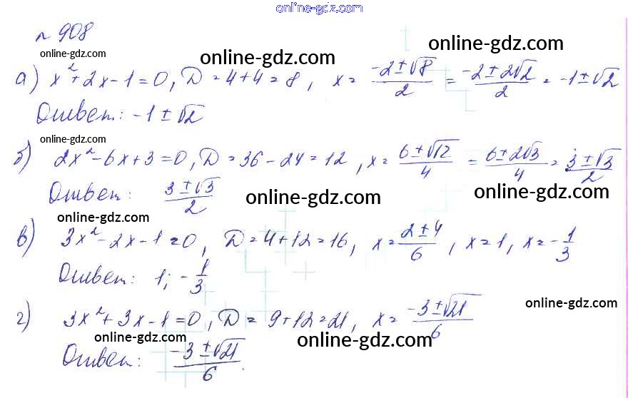 Готовые домашние задания по Алгебре за 8 класс Учебник Макарычев, Миндюк Углубленный уровень 2014 - Упражнения 908