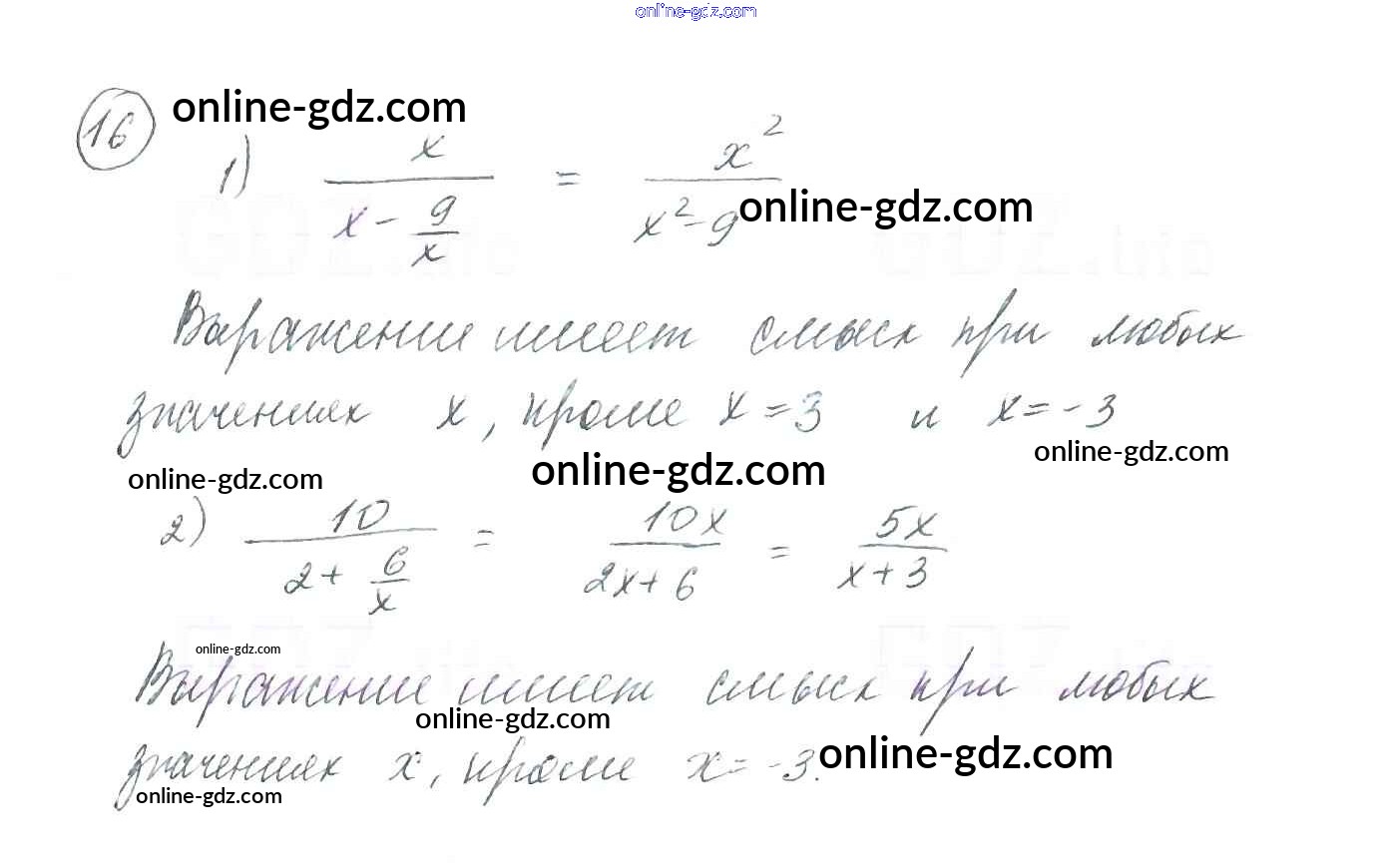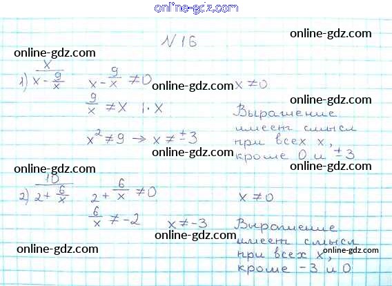 Готовые домашние задания по Алгебре за 8 класс Учебник Мерзляк, Полонский Алгоритм успеха 2016 - §1. Рациональные дроби Глава 1. Рациональные выражения 16