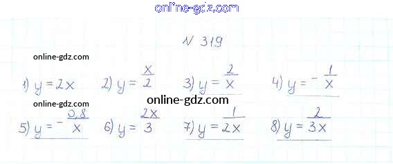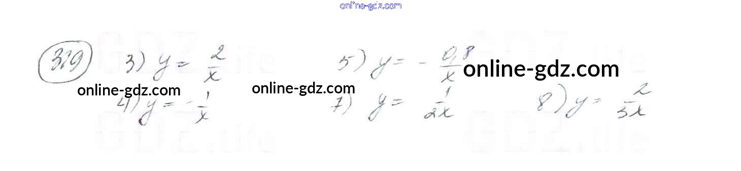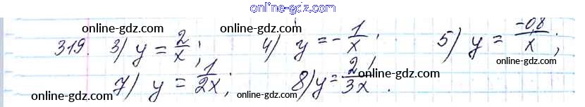 Готовые домашние задания по Алгебре за 8 класс Учебник Мерзляк, Полонский Алгоритм успеха 2016 - §10. Функция. y=k/x и её график Глава 1. Рациональные выражения 319