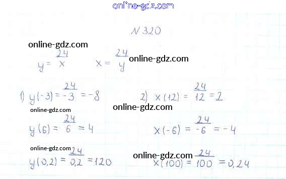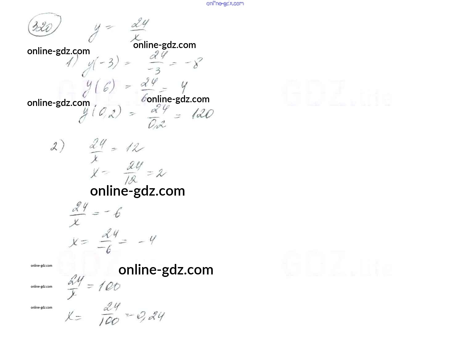 Готовые домашние задания по Алгебре за 8 класс Учебник Мерзляк, Полонский Алгоритм успеха 2016 - §10. Функция. y=k/x и её график Глава 1. Рациональные выражения 320