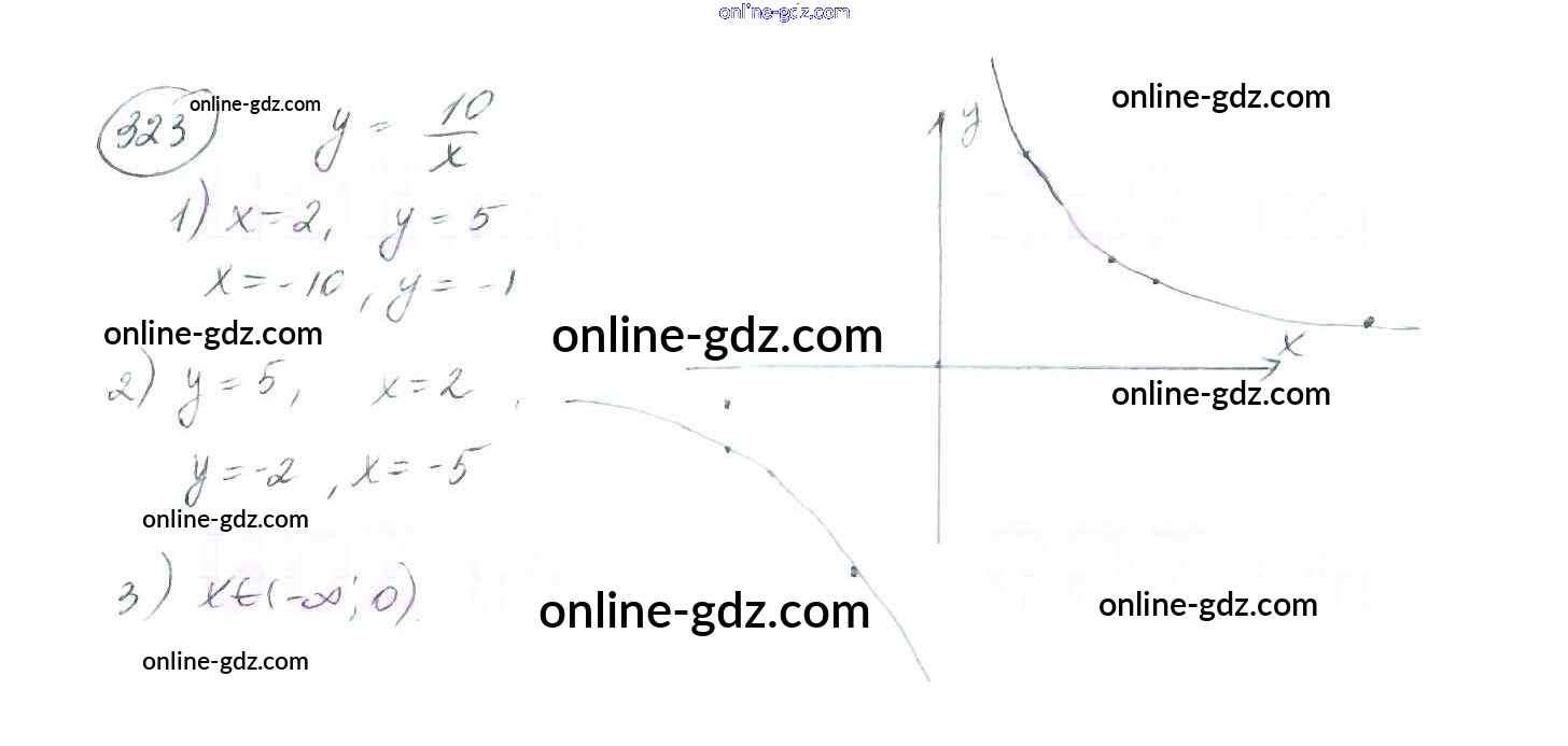 Готовые домашние задания по Алгебре за 8 класс Учебник Мерзляк, Полонский Алгоритм успеха 2016 - §10. Функция. y=k/x и её график Глава 1. Рациональные выражения 323