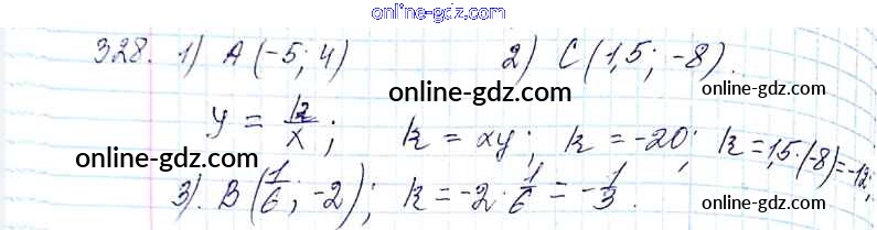 Готовые домашние задания по Алгебре за 8 класс Учебник Мерзляк, Полонский Алгоритм успеха 2016 - §10. Функция. y=k/x и её график Глава 1. Рациональные выражения 328