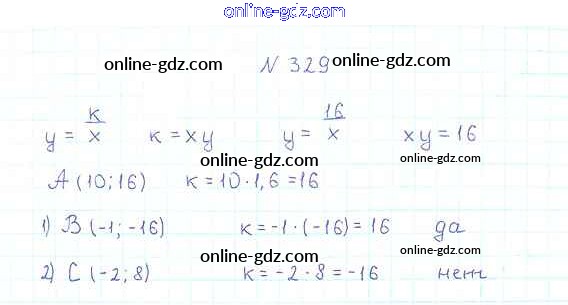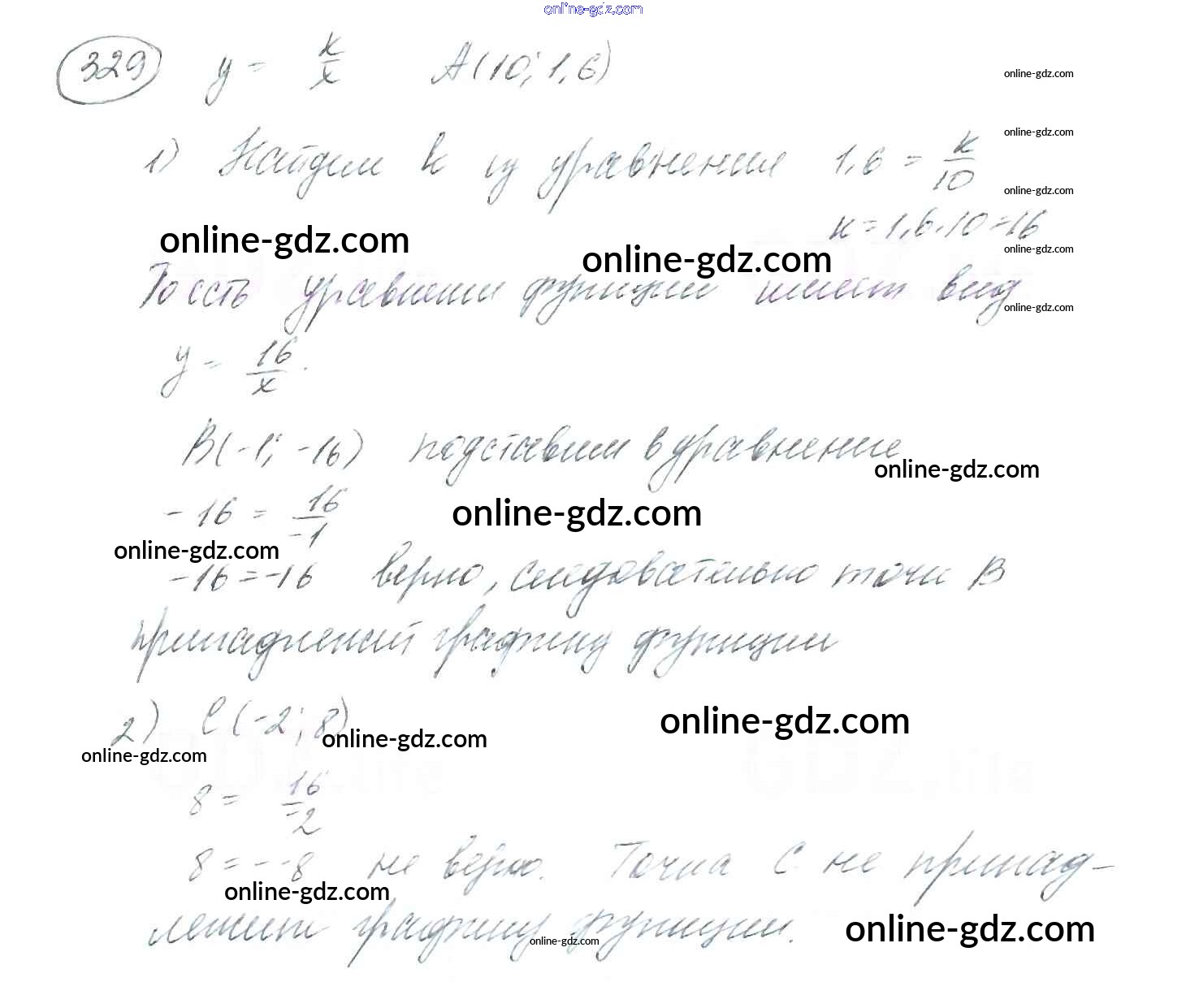Готовые домашние задания по Алгебре за 8 класс Учебник Мерзляк, Полонский Алгоритм успеха 2016 - §10. Функция. y=k/x и её график Глава 1. Рациональные выражения 329
