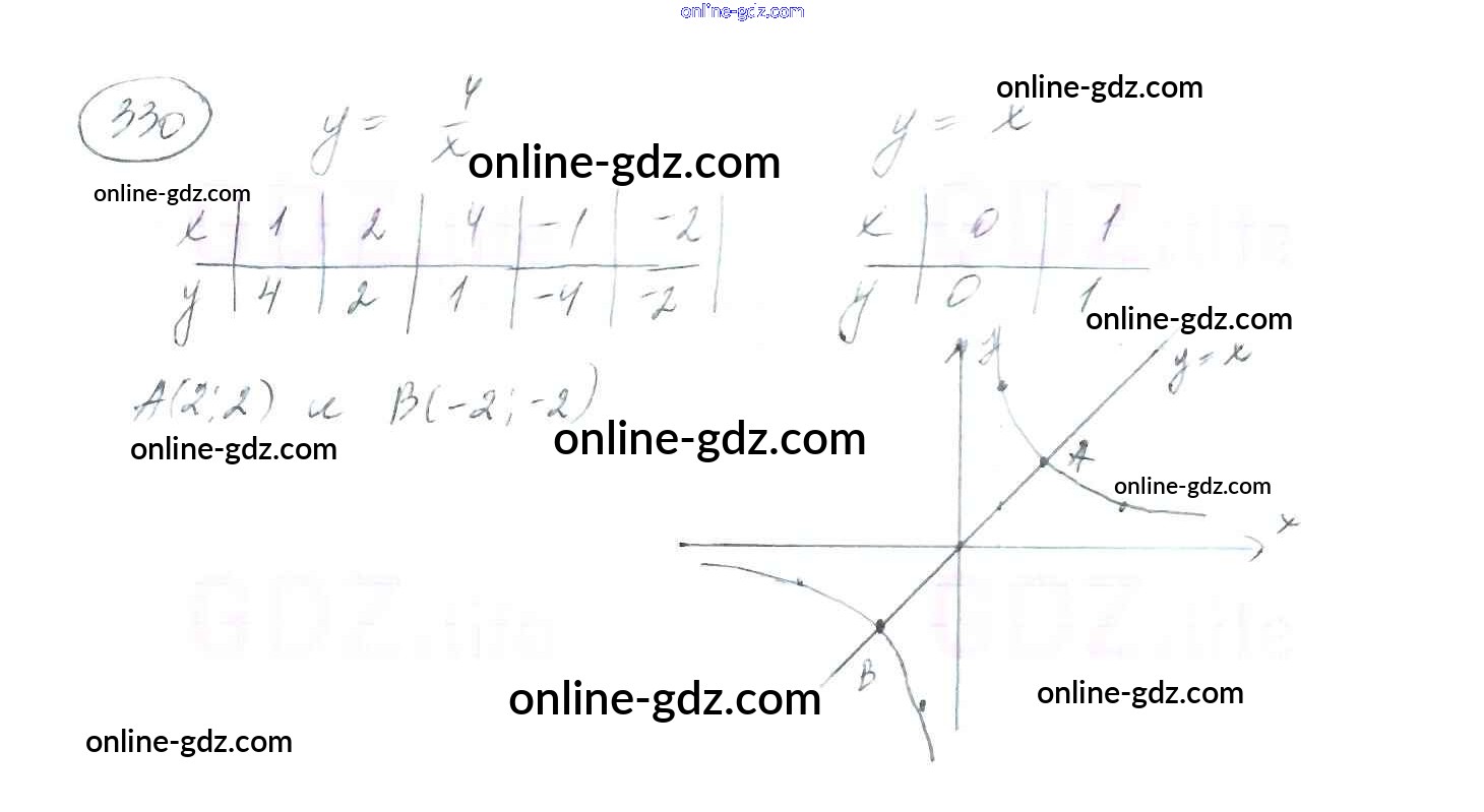Готовые домашние задания по Алгебре за 8 класс Учебник Мерзляк, Полонский Алгоритм успеха 2016 - §10. Функция. y=k/x и её график Глава 1. Рациональные выражения 330