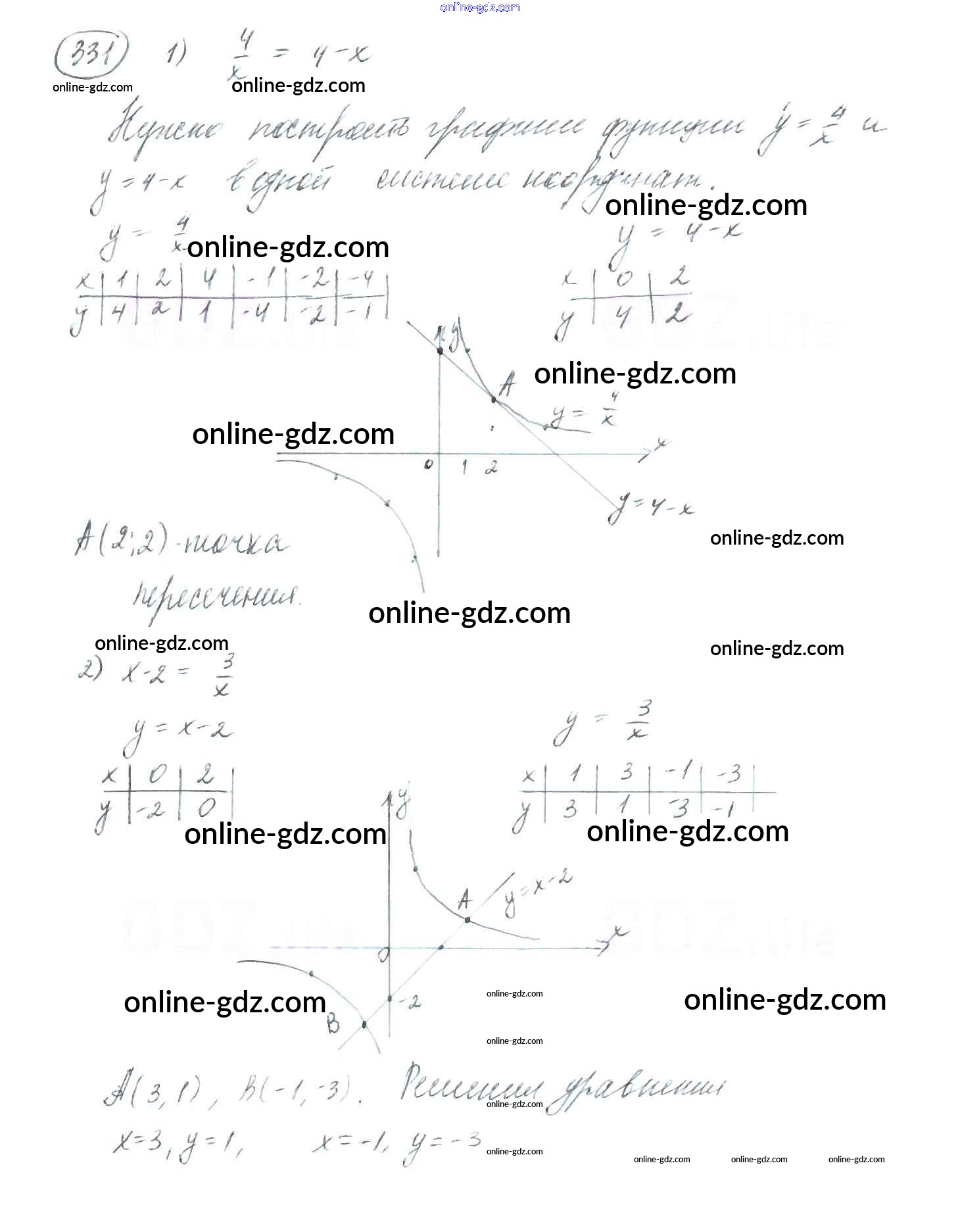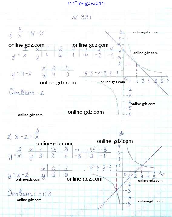 Готовые домашние задания по Алгебре за 8 класс Учебник Мерзляк, Полонский Алгоритм успеха 2016 - §10. Функция. y=k/x и её график Глава 1. Рациональные выражения 331
