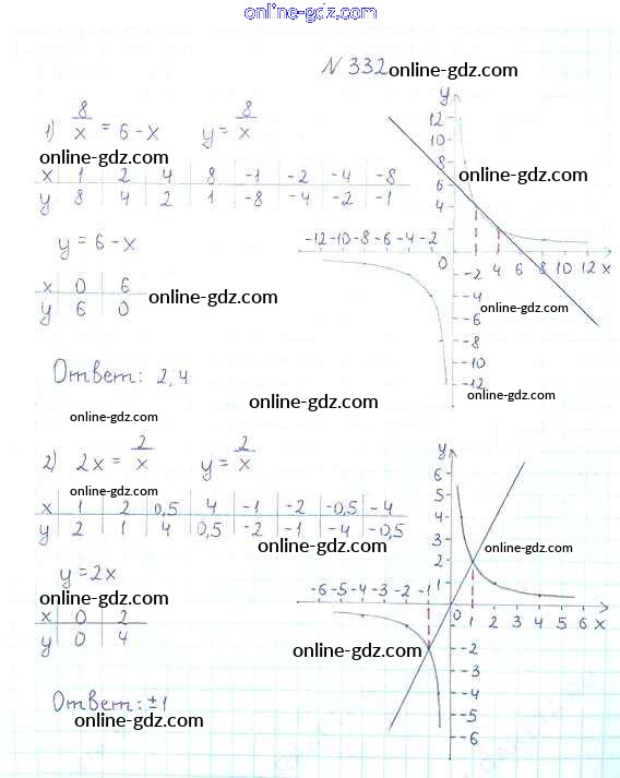 Готовые домашние задания по Алгебре за 8 класс Учебник Мерзляк, Полонский Алгоритм успеха 2016 - §10. Функция. y=k/x и её график Глава 1. Рациональные выражения 332