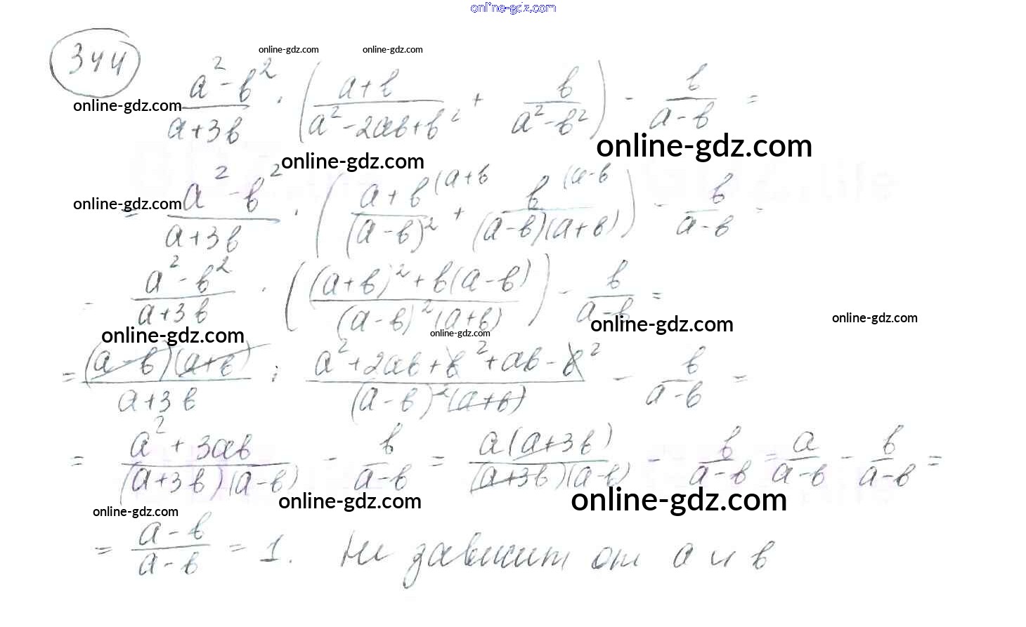Готовые домашние задания по Алгебре за 8 класс Учебник Мерзляк, Полонский Алгоритм успеха 2016 - §10. Функция. y=k/x и её график Глава 1. Рациональные выражения 344