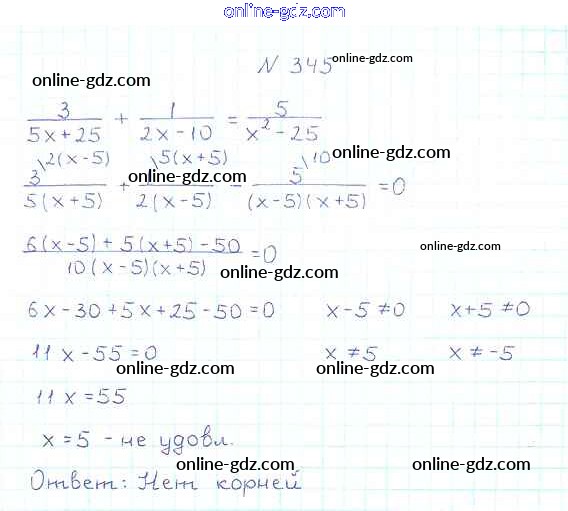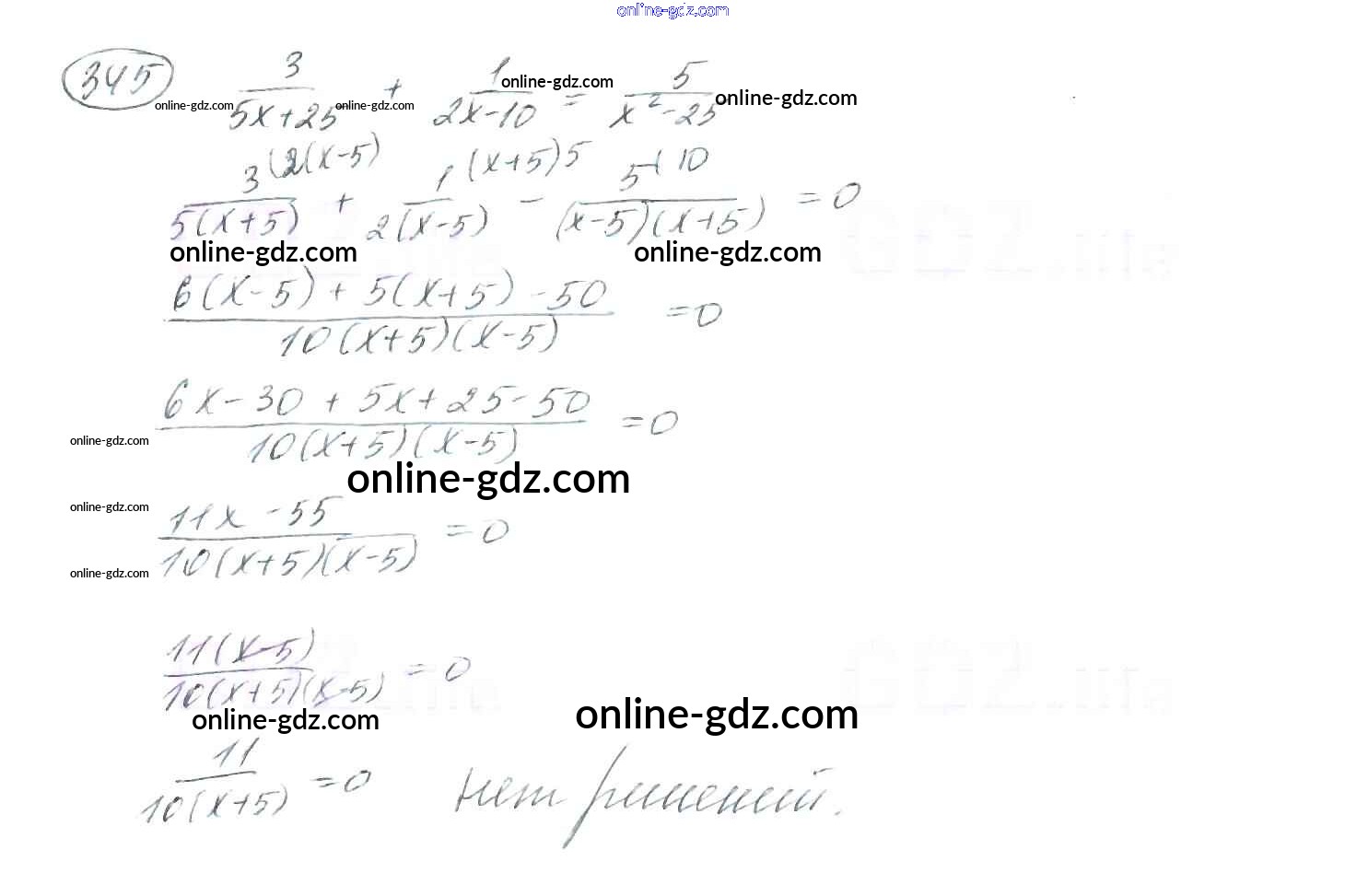 Готовые домашние задания по Алгебре за 8 класс Учебник Мерзляк, Полонский Алгоритм успеха 2016 - §10. Функция. y=k/x и её график Глава 1. Рациональные выражения 345