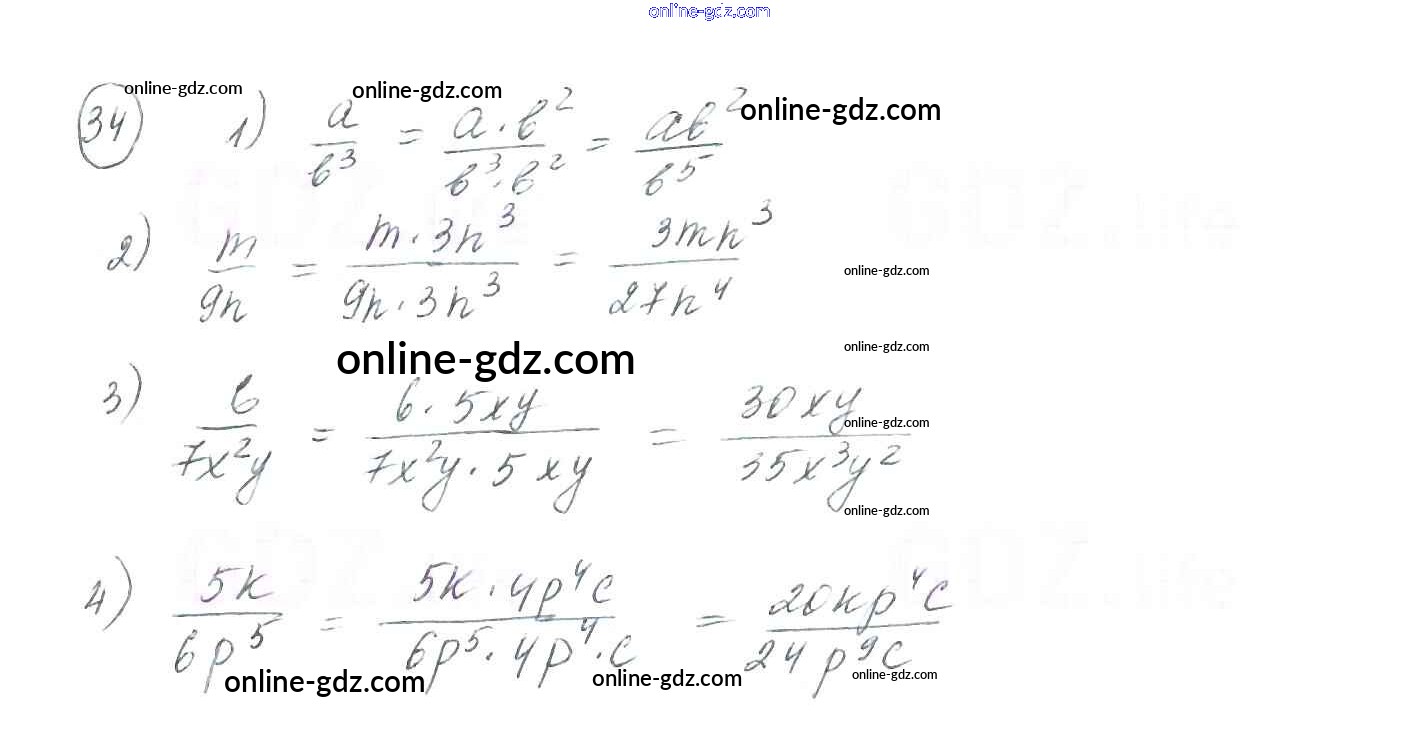 Готовые домашние задания по Алгебре за 8 класс Учебник Мерзляк, Полонский Алгоритм успеха 2016 - §2. Основное свойство рациональной дроби Глава 1. Рациональные выражения 34