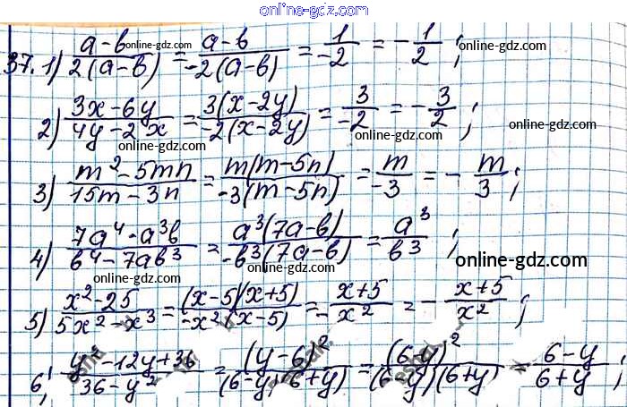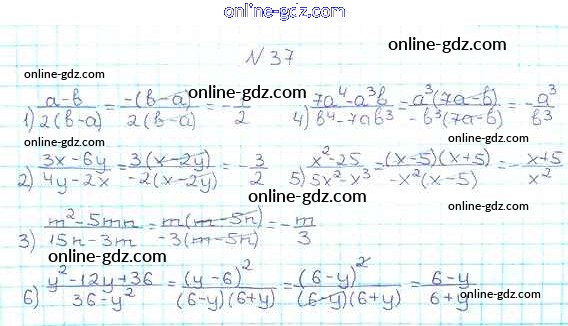 Готовые домашние задания по Алгебре за 8 класс Учебник Мерзляк, Полонский Алгоритм успеха 2016 - §2. Основное свойство рациональной дроби Глава 1. Рациональные выражения 37