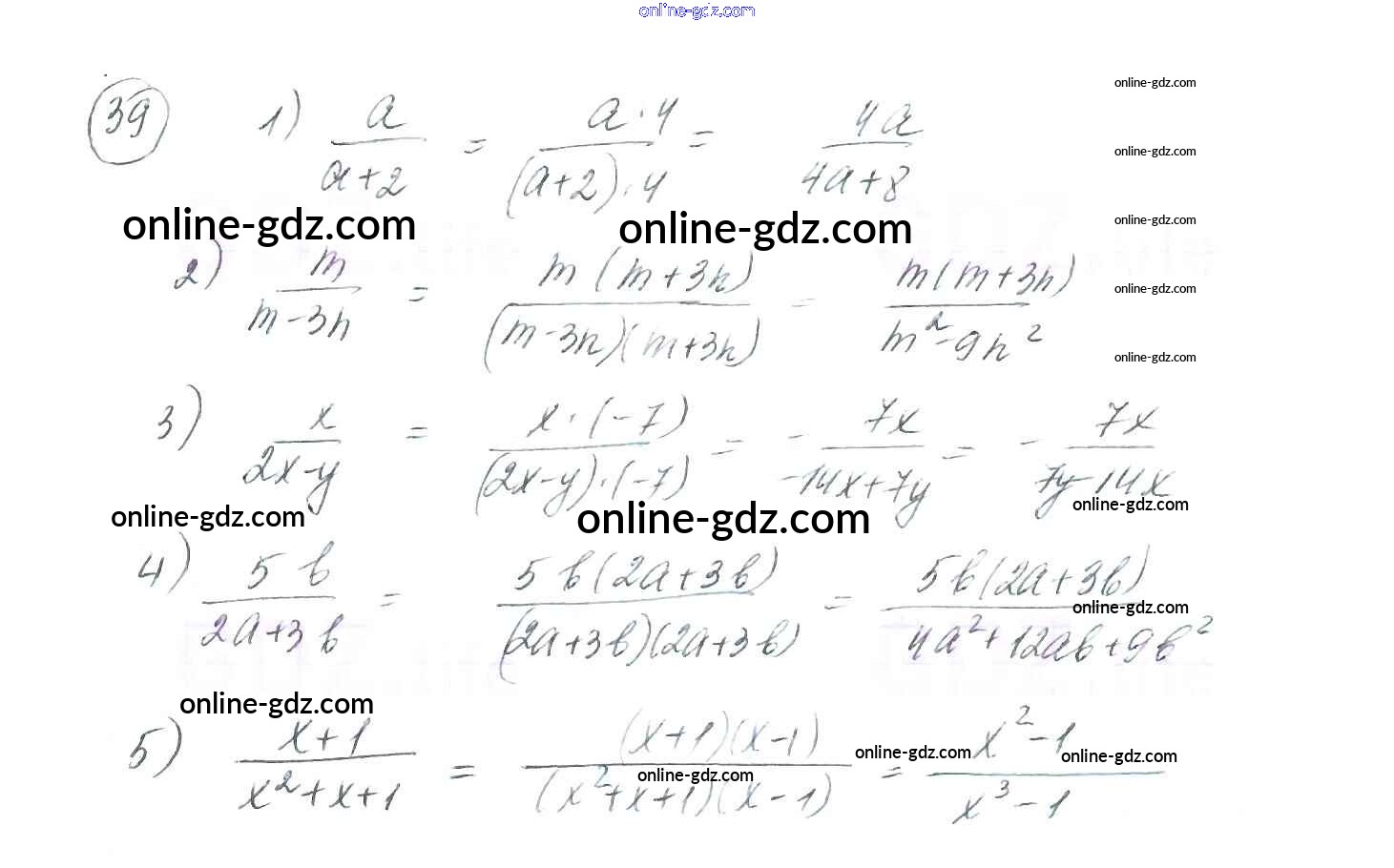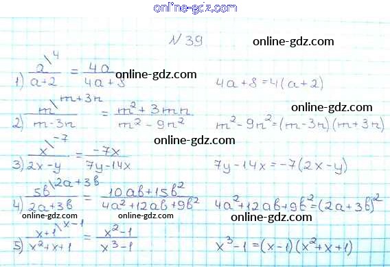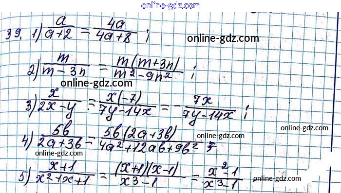 Готовые домашние задания по Алгебре за 8 класс Учебник Мерзляк, Полонский Алгоритм успеха 2016 - §2. Основное свойство рациональной дроби Глава 1. Рациональные выражения 39