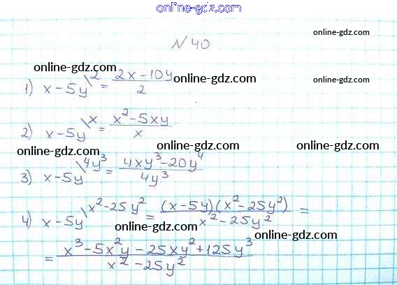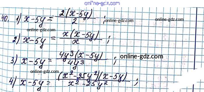 Готовые домашние задания по Алгебре за 8 класс Учебник Мерзляк, Полонский Алгоритм успеха 2016 - §2. Основное свойство рациональной дроби Глава 1. Рациональные выражения 40