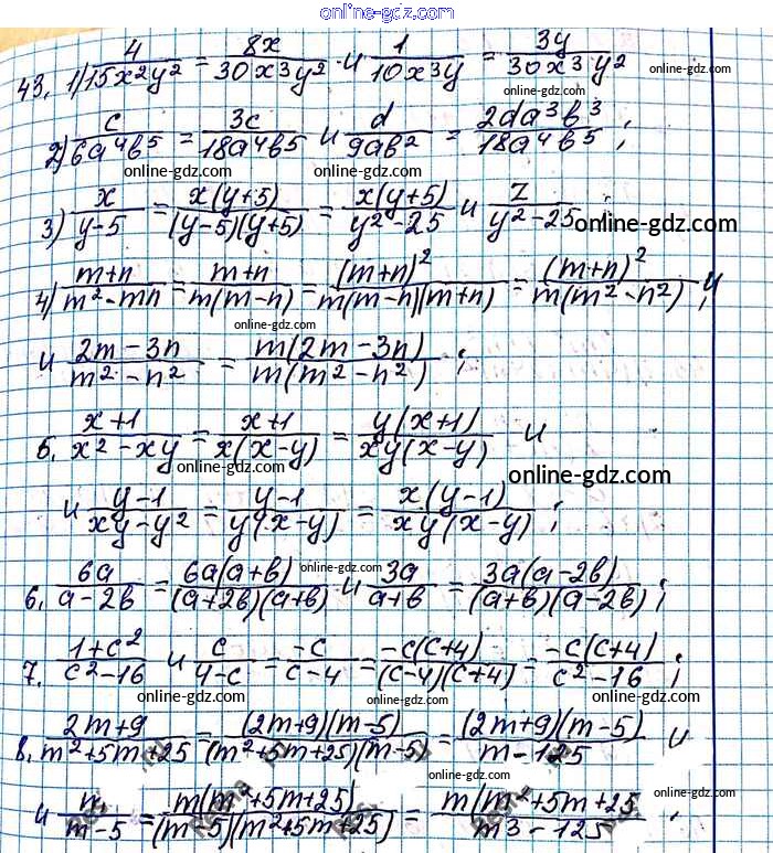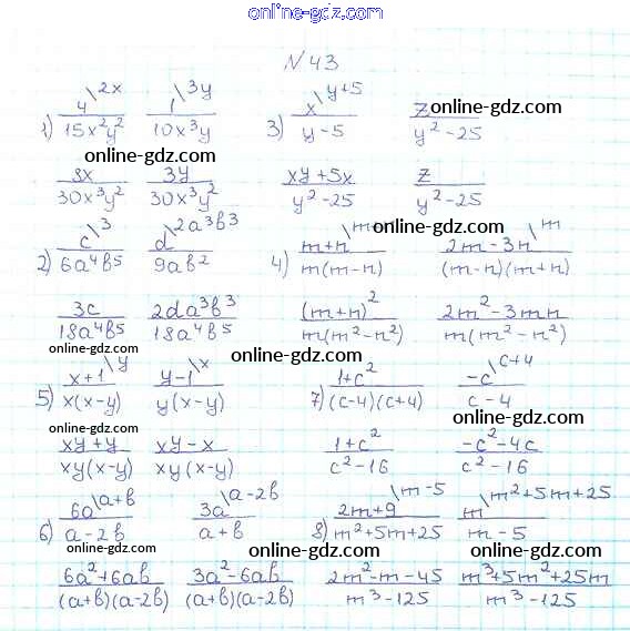 Готовые домашние задания по Алгебре за 8 класс Учебник Мерзляк, Полонский Алгоритм успеха 2016 - §2. Основное свойство рациональной дроби Глава 1. Рациональные выражения 43