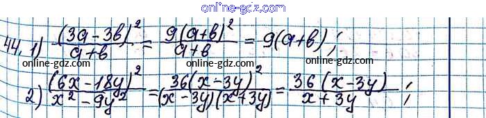 Готовые домашние задания по Алгебре за 8 класс Учебник Мерзляк, Полонский Алгоритм успеха 2016 - §2. Основное свойство рациональной дроби Глава 1. Рациональные выражения 44
