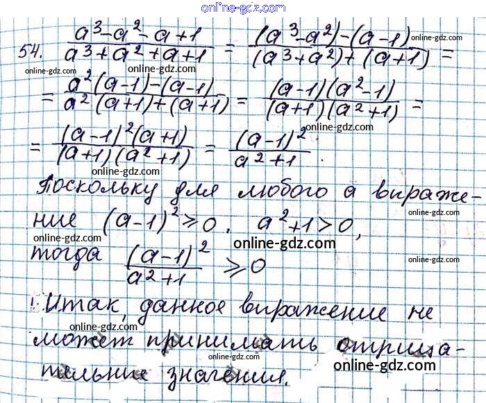 Готовые домашние задания по Алгебре за 8 класс Учебник Мерзляк, Полонский Алгоритм успеха 2016 - §2. Основное свойство рациональной дроби Глава 1. Рациональные выражения 54