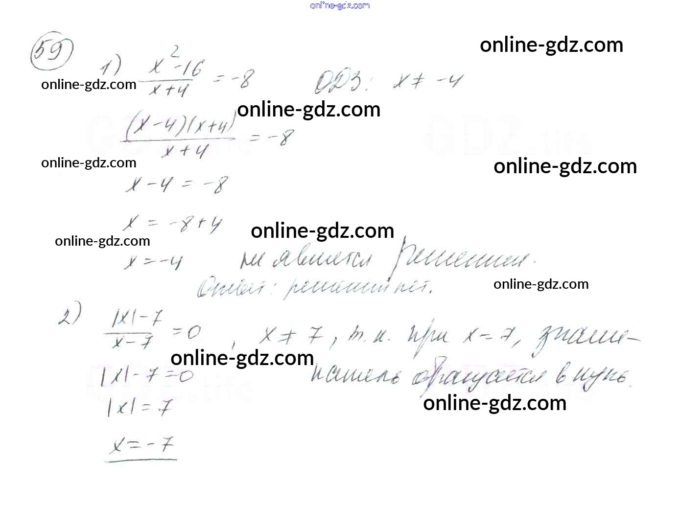 Готовые домашние задания по Алгебре за 8 класс Учебник Мерзляк, Полонский Алгоритм успеха 2016 - §2. Основное свойство рациональной дроби Глава 1. Рациональные выражения 59