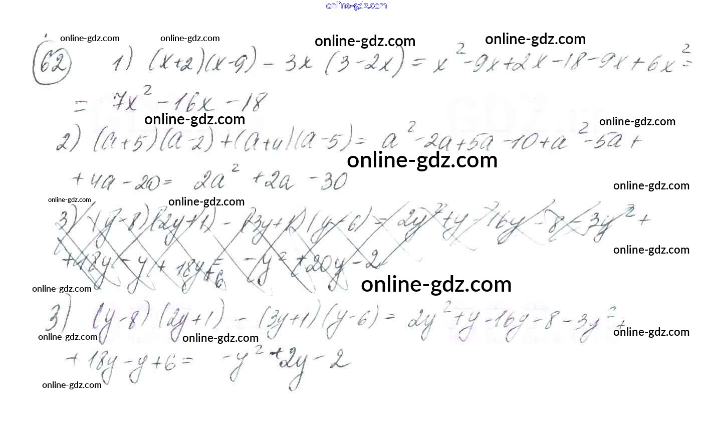 Готовые домашние задания по Алгебре за 8 класс Учебник Мерзляк, Полонский Алгоритм успеха 2016 - §2. Основное свойство рациональной дроби Глава 1. Рациональные выражения 62
