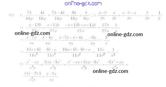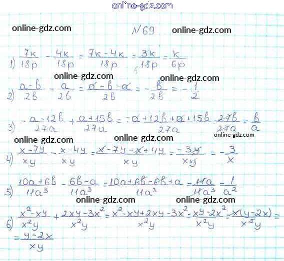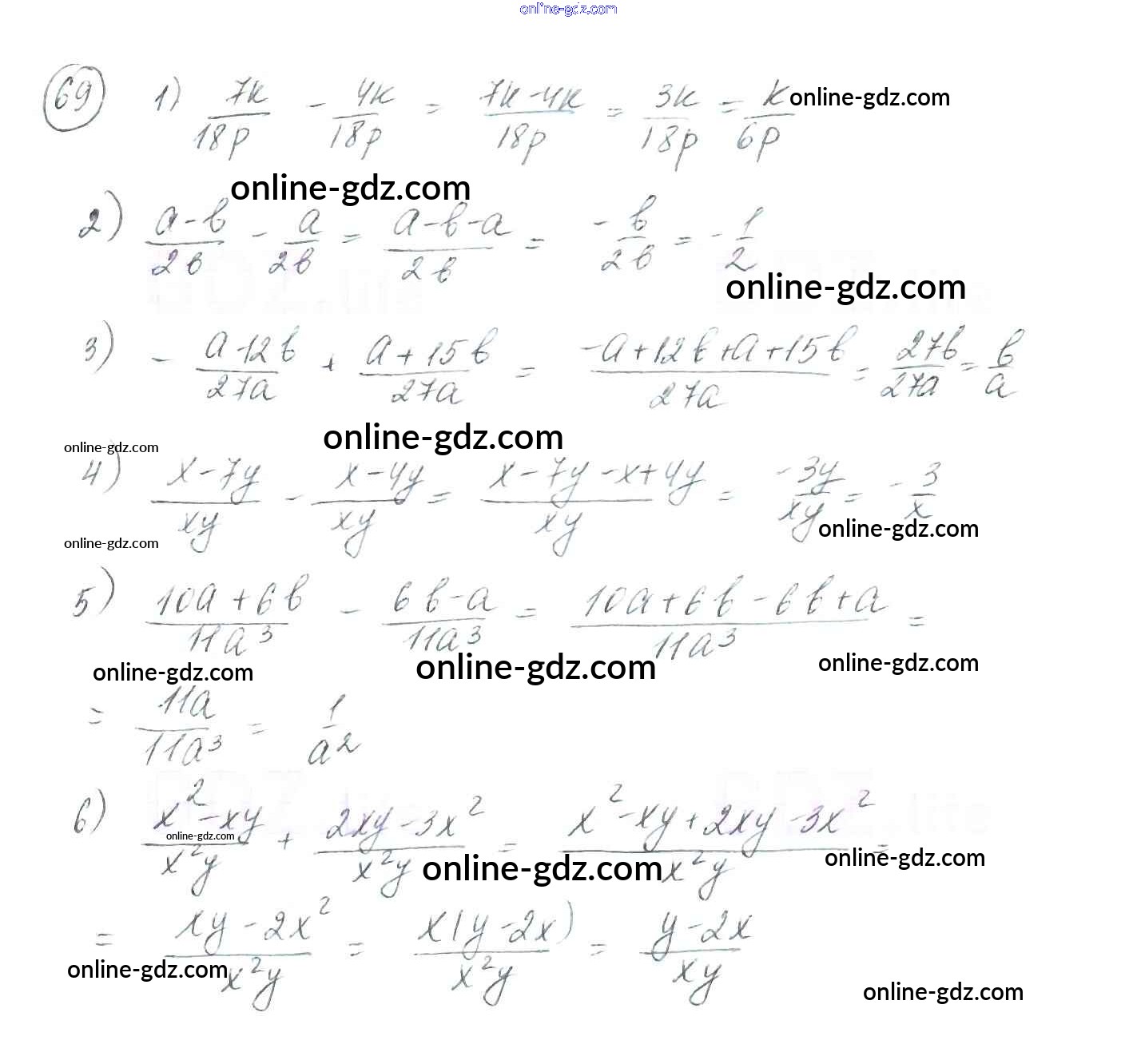 Готовые домашние задания по Алгебре за 8 класс Учебник Мерзляк, Полонский Алгоритм успеха 2016 - §3. Сложение и вычитание рациональных дробей с одинаковыми знаменателями Глава 1. Рациональные выражения 69