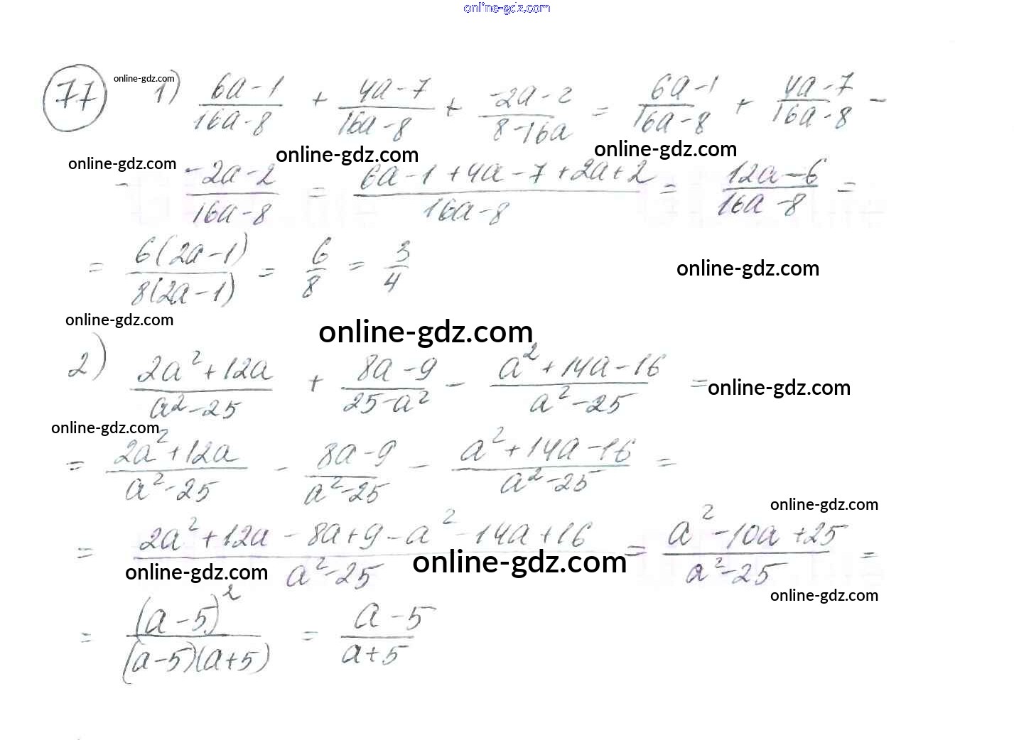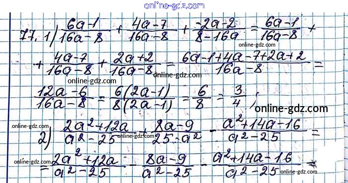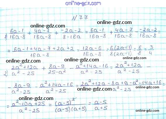 Готовые домашние задания по Алгебре за 8 класс Учебник Мерзляк, Полонский Алгоритм успеха 2016 - §3. Сложение и вычитание рациональных дробей с одинаковыми знаменателями Глава 1. Рациональные выражения 77