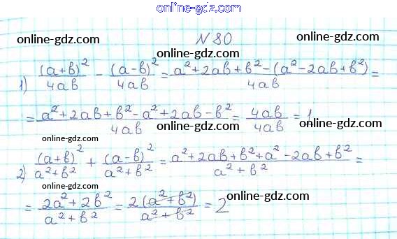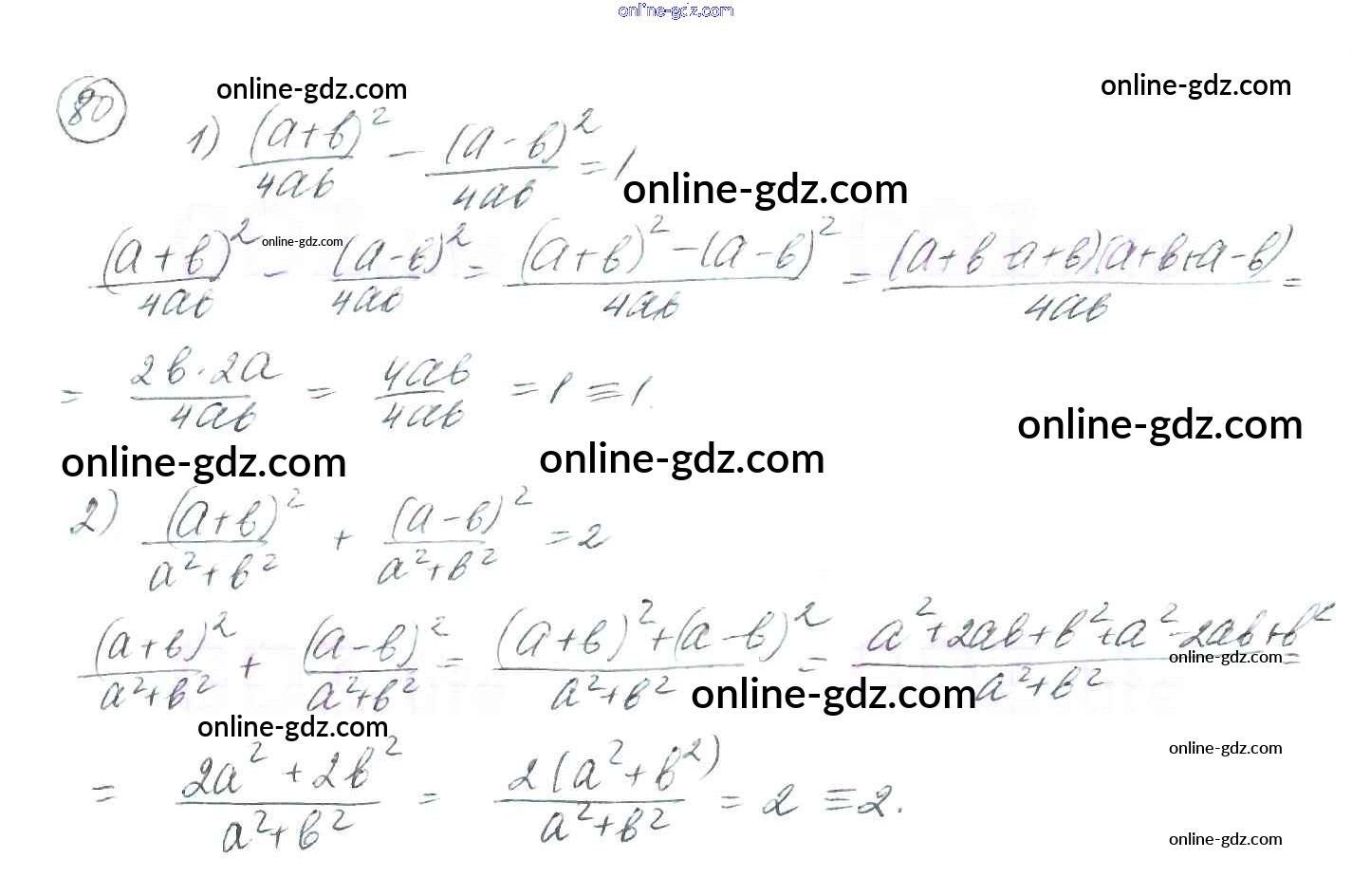 Готовые домашние задания по Алгебре за 8 класс Учебник Мерзляк, Полонский Алгоритм успеха 2016 - §3. Сложение и вычитание рациональных дробей с одинаковыми знаменателями Глава 1. Рациональные выражения 80