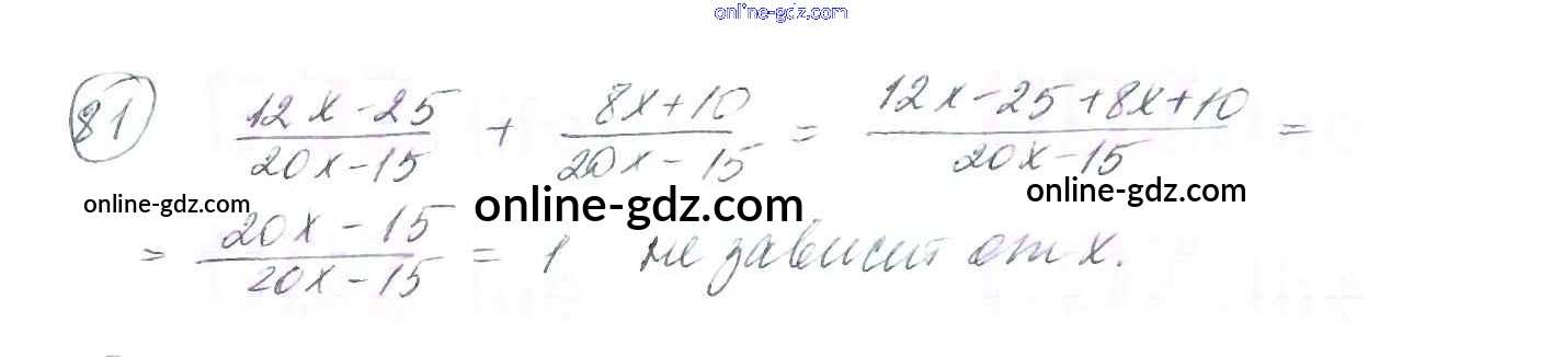 Готовые домашние задания по Алгебре за 8 класс Учебник Мерзляк, Полонский Алгоритм успеха 2016 - §3. Сложение и вычитание рациональных дробей с одинаковыми знаменателями Глава 1. Рациональные выражения 81
